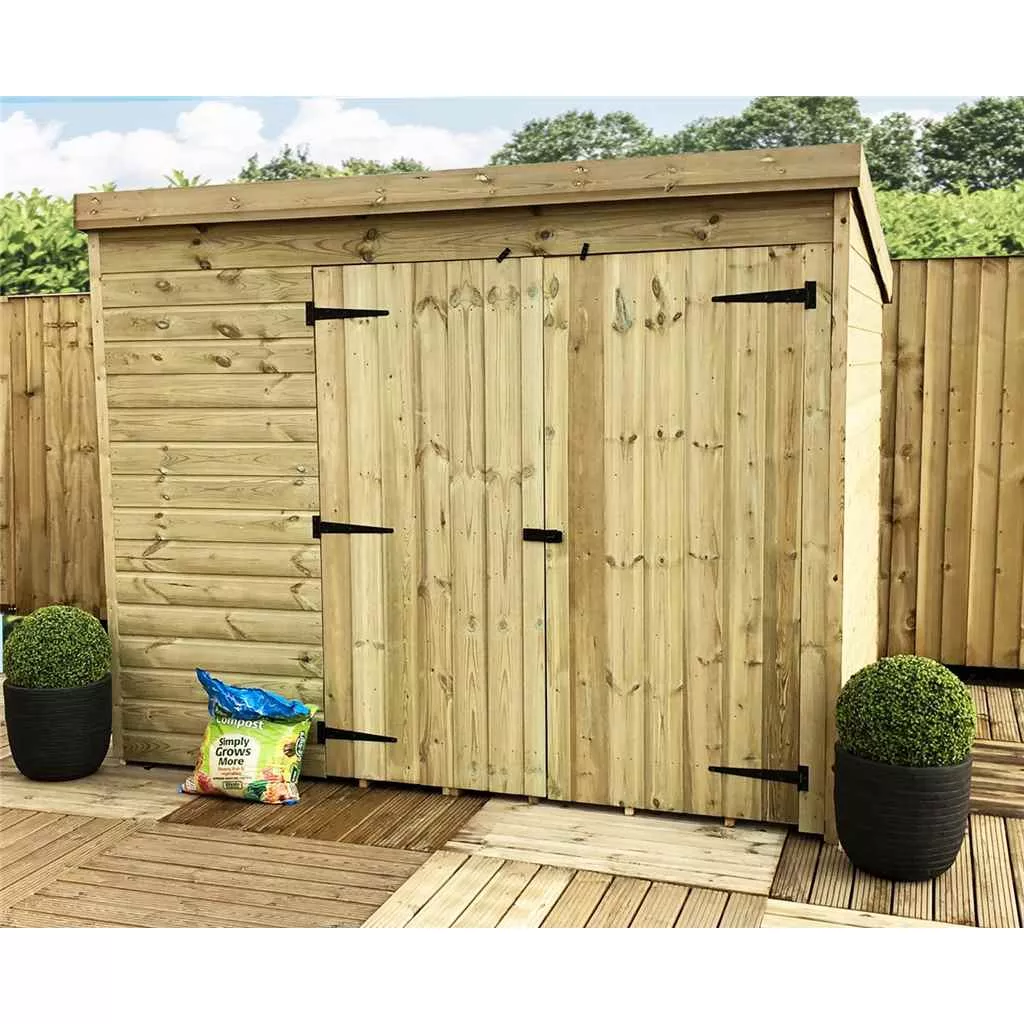 8FT x 7FT WINDOWLESS PRESSURE TREATED TONGUE & GROOVE PENT SHED + DOUBLE DOORS