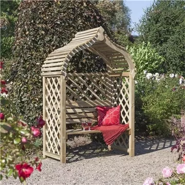 Create a serene garden retreat with the Indian 2 Seater Arbour. Inspired by traditional Eastern design, this beautifully crafted piece features an open slatted roof and decorative lattice panels that invite light while offering a sense of privacy. Built from pressure-treated timber for lasting durability, its natural wood finish blends effortlessly with any garden setting — a perfect place to relax and unwind.