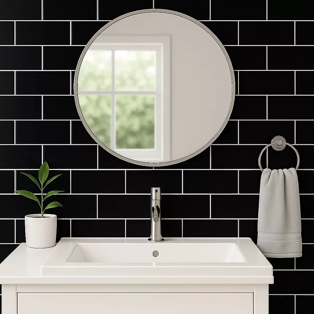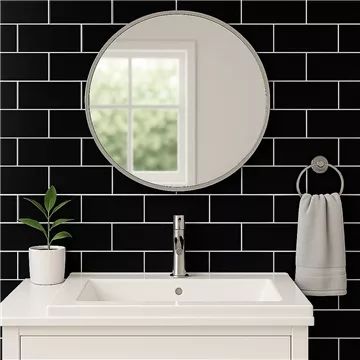 Inspired by the timeless tiles of the New York Subway and the effortless style of SoHo loft interiors, these premium Black gloss ceramic wall tiles bring sophisticated city living into your home. The sleek, reflective finish and classic bevelled edges create a bold yet elegant statement, perfect for those seeking a modern urban look with authentic charm.