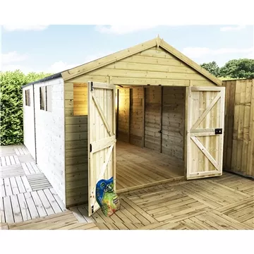 Marlborough (BS) Premier Apex Workshops: 14 X 11 Premier Pressure Treated T&g Apex Shed / Workshop With Higher Eaves & Ridge Height 6 Windows & Double Doors (12mm Tongue & Groove Walls, Floor & Roof) + Safety Toughened Glass + Super S