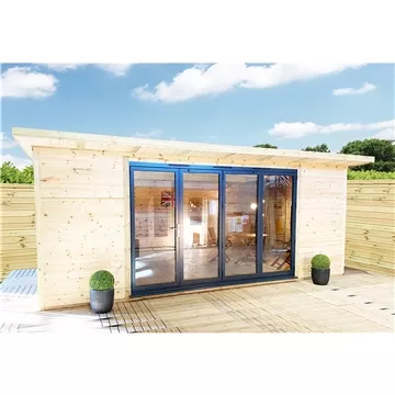 This stunning 4m x 5m Insulated Garden Office offers a modern building that is both practical and stylish. You can position the panels of the building to your specification, moving windows and walls to your requirements giving you a bespoke building. .