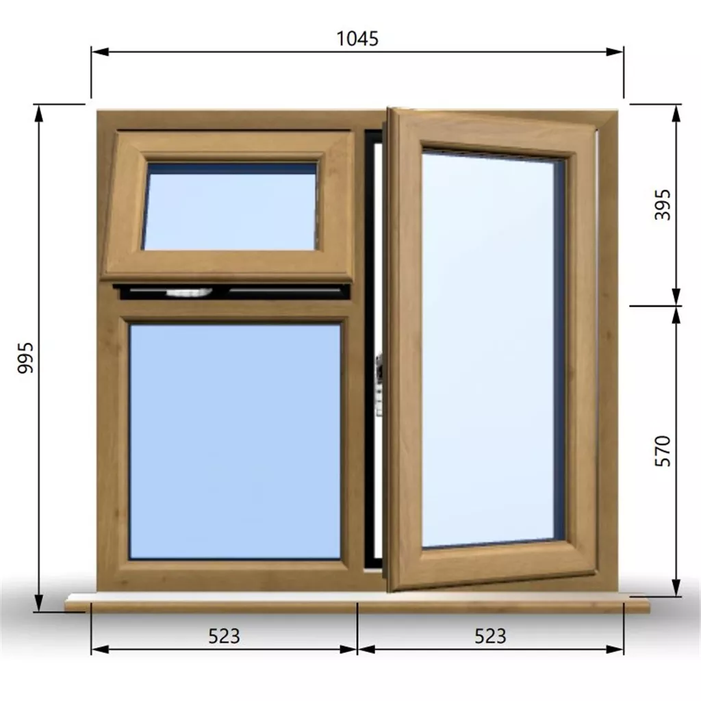 1045mm (W) x 995mm (H) Wooden Stormproof Window - 1 Opening Window (RIGHT) - Top Opening Window (LEFT) - 70mm Projecting Cill - Trickle Vent - Black Gasket and Chrome Furniture - Toughened Clear Panes - Fixing Kit - "Part Q" Compliant.