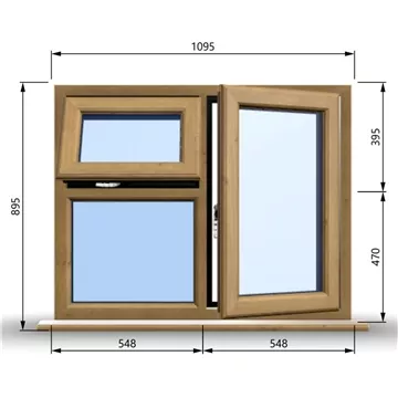 1095mm (W) x 895mm (H) Wooden Stormproof Window - 1 Opening Window (RIGHT) - Top Opening Window (LEFT) - 70mm Projecting Cill - Trickle Vent - Black Gasket and Chrome Furniture - Toughened Clear Pane - Fixing Kit - "Part Q" Compliant.