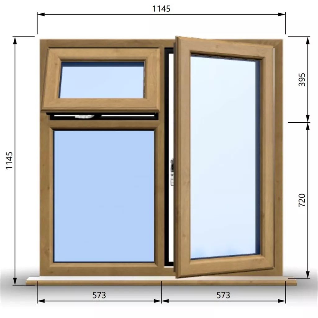 1145mm (W) x 1145mm (H) Wooden Stormproof Window - 1 Opening Window (RIGHT) - Top Opening Window (LEFT) - 70mm Projecting Cill - Trickle Vent - Black Gasket and Chrome Furniture - Toughened Clear Pane - Fixing Kit - "Part Q" Compliant.