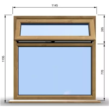 1145mm (W) x 1195mm (H) Wooden Stormproof Window - 1 Top Opening Window - 70mm Projecting Cill - Trickle Vent - Black Gasket and Chrome Furniture - Toughened Clear Pane - Fixing Kit - "Part Q" Compliant.