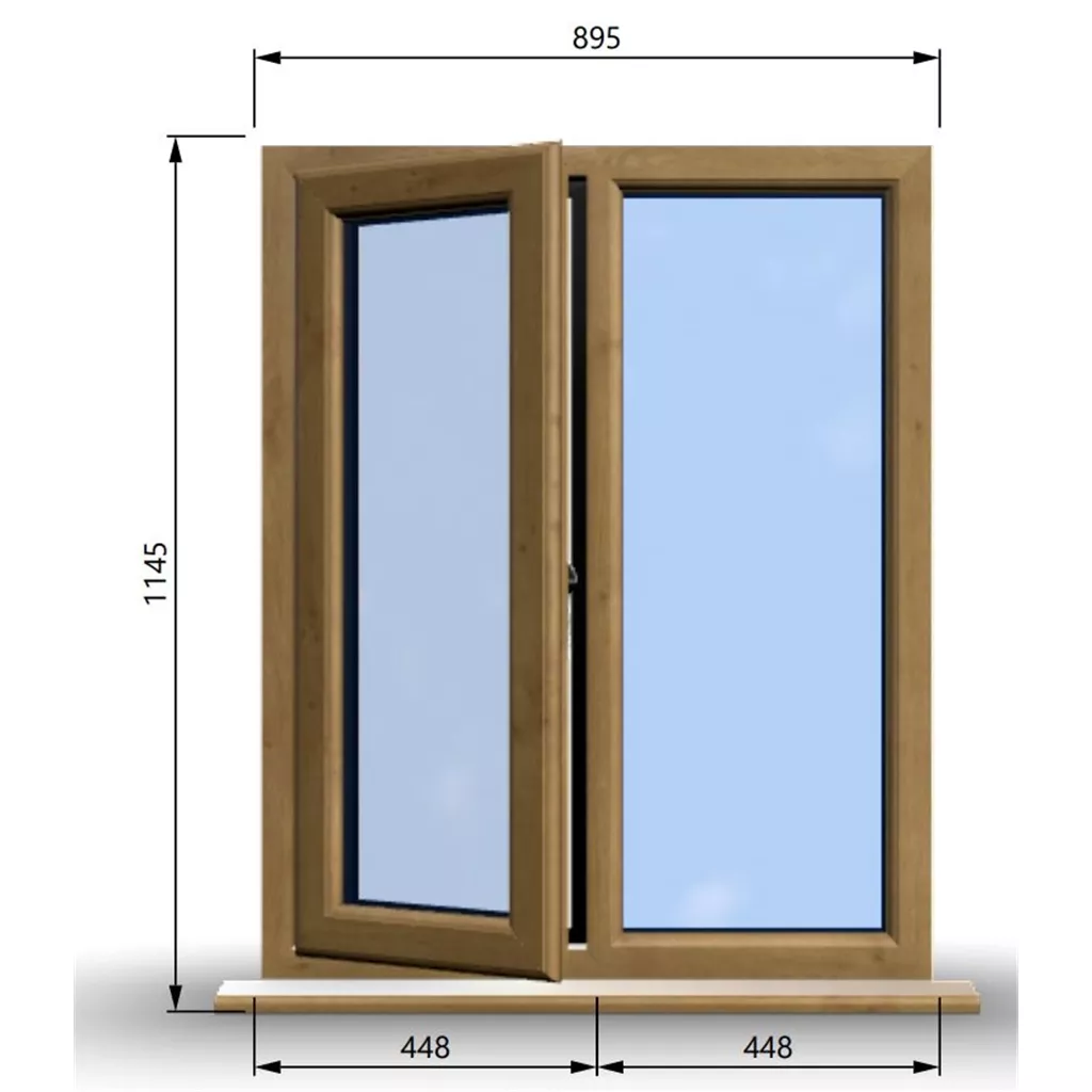 895mm (W) x 1145mm (H) Wooden Stormproof Window - 1/2 Left Opening Window - 70mm Projecting Cill - Trickle Vent - Black Gasket and Chrome Furniture - Toughened Clear Panes - Fixing Kit - "Part Q" Compliant.