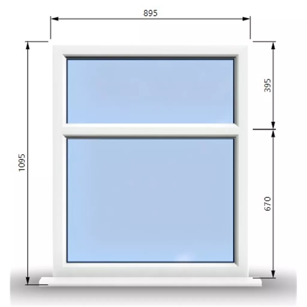 895mm (W) x 1095mm (H) Premium PVCu Stormproof Casement Window - 2 Horizontal Panes Non Opening Windows - 70mm Projecting Cill - Trickle Vent - Black Gasket and Chrome Furniture - Toughened Clear Panes - Fixing Kit - White Inside and Outside - "Part Q" Compliant.