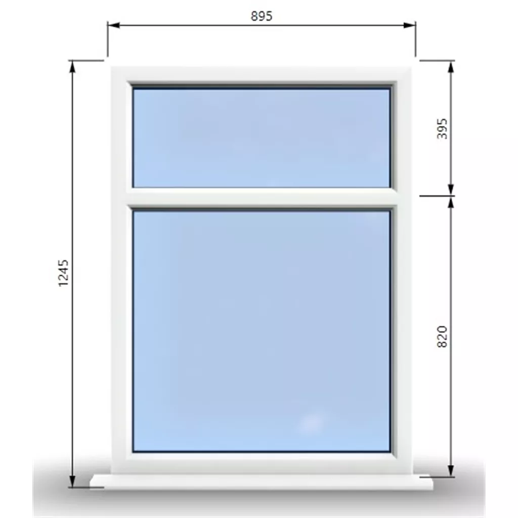 895mm (W) x 1245mm (H) Premium PVCu Stormproof Casement Window - 2 Horizontal Panes Non Opening Windows - 70mm Projecting Cill - Trickle Vent - Black Gasket and Chrome Furniture - Toughened Clear Panes - Fixing Kit - White Inside and Outside - "Part Q" Compliant.