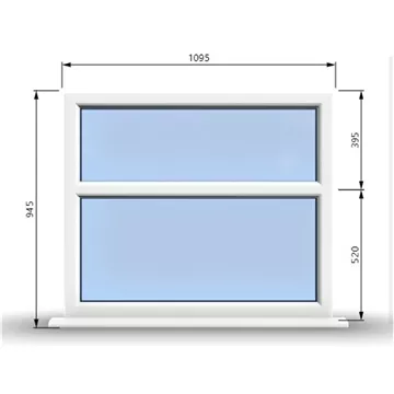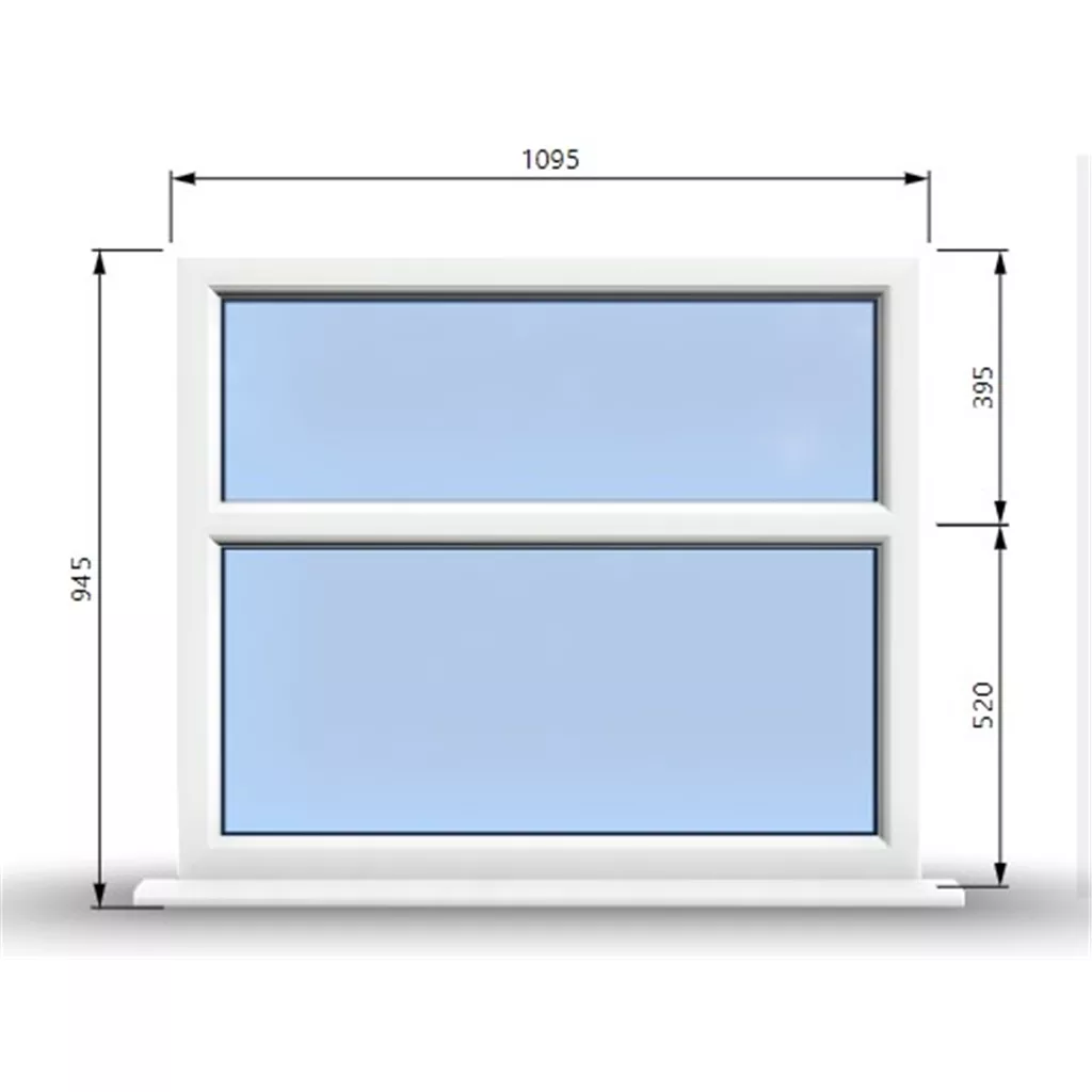1095mm (W) x 945mm (H) Premium PVCu Stormproof Casement Window - 2 Horizontal Panes Non Opening Windows - 70mm Projecting Cill - Trickle Vent - Black Gasket and Chrome Furniture - Toughened Clear Panes - Fixing Kit - White Inside and Outside - "Part Q" Compliant.