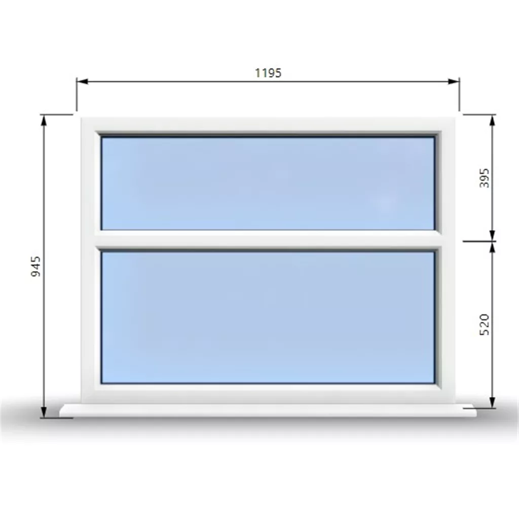 1195mm (W) x 945mm (H) Premium PVCu Stormproof Casement Window - 2 Horizontal Panes Non Opening Windows - 70mm Projecting Cill - Trickle Vent - Black Gasket and Chrome Furniture - Toughened Clear Panes - Fixing Kit - White Inside and Outside - "Part Q" Compliant.
