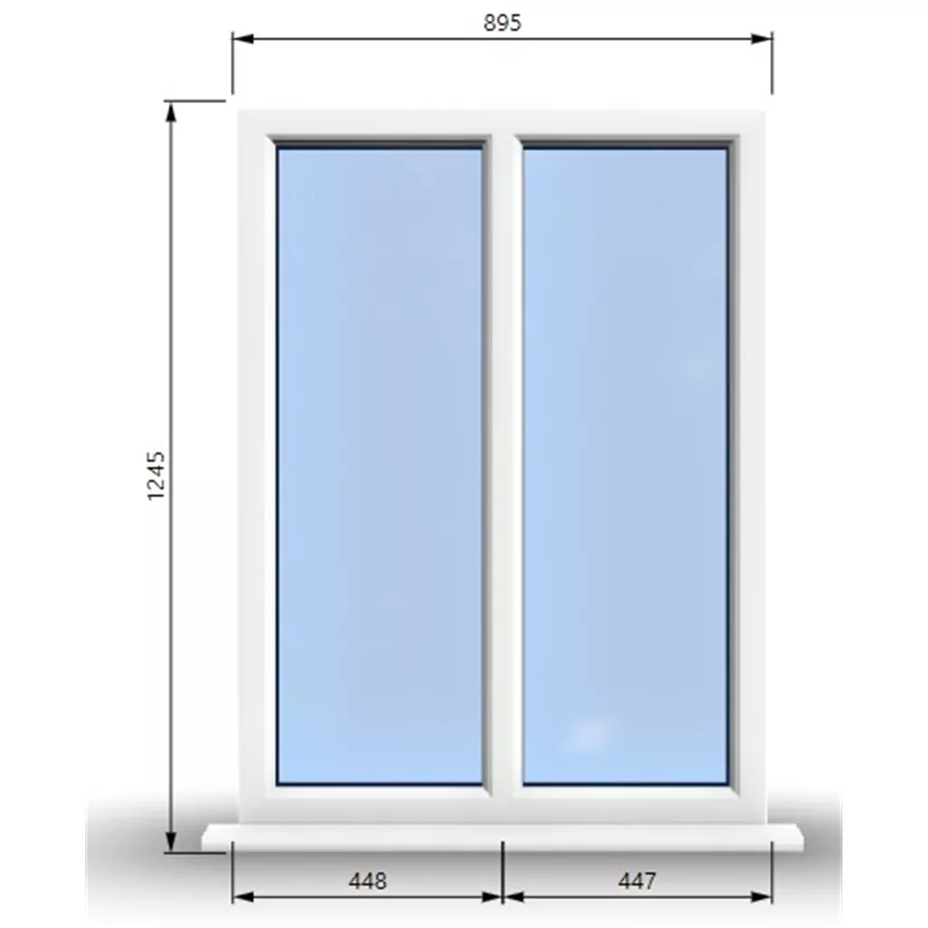 895mm (W) x 1245mm (H) Premium PVCu Stormproof Casement Window - 2 Vertical Panes Non Opening Windows - 70mm Projecting Cill - Trickle Vent - Black Gasket and Chrome Furniture - Toughened Clear Panes - Fixing Kit - White Inside and Outside - "Part Q" Compliant.