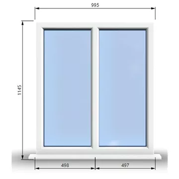 995mm (W) x 1145mm (H) Premium PVCu Stormproof Casement Window - 2 Vertical Panes Non Opening Windows - 70mm Projecting Cill - Trickle Vent - Black Gasket and Chrome Furniture - Toughened Clear Panes - Fixing Kit - White Inside and Outside - "Part Q" Compliant.