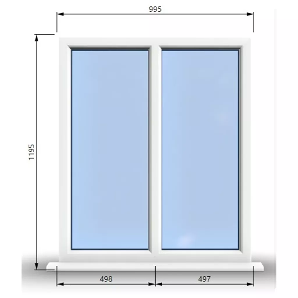 995mm (W) x 1195mm (H) Premium PVCu Stormproof Casement Window - 2 Vertical Panes Non Opening Windows - 70mm Projecting Cill - Trickle Vent - Black Gasket and Chrome Furniture - Toughened Clear Panes - Fixing Kit - White Inside and Outside - "Part Q" Compliant.