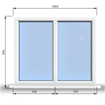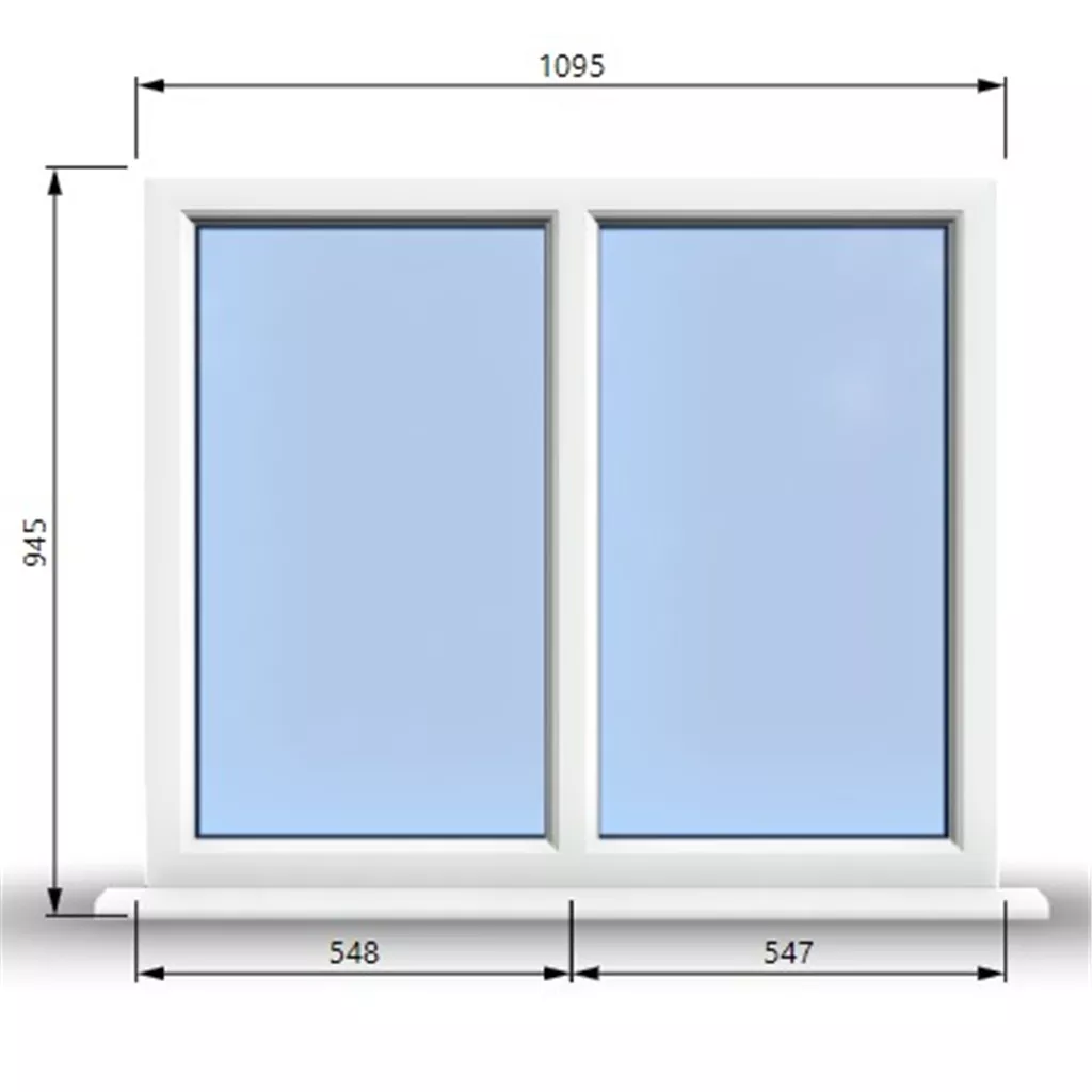 1095mm (W) x 945mm (H) Premium PVCu Stormproof Casement Window - 2 Vertical Panes Non Opening Windows - 70mm Projecting Cill - Trickle Vent - Black Gasket and Chrome Furniture - Toughened Clear Panes - Fixing Kit - White Inside and Outside - "Part Q" Compliant.