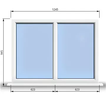 1245mm (W) x 945mm (H) Premium PVCu Stormproof Casement Window - 2 Vertical Panes Non Opening Windows - 70mm Projecting Cill - Trickle Vent - Black Gasket and Chrome Furniture - Toughened Clear Panes - Fixing Kit - White Inside and Outside - "Part Q" Compliant.