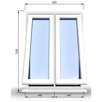 895mm (W) x 1245mm (H) Premium PVCu Stormproof Casement Window - 2 Vertical Bottom Opening Windows - 70mm Projecting Cill - Trickle Vent - Black Gasket and Chrome Furniture - Toughened Clear Panes - Fixing Kit - White Inside and Outside - "Part Q" Compliant.