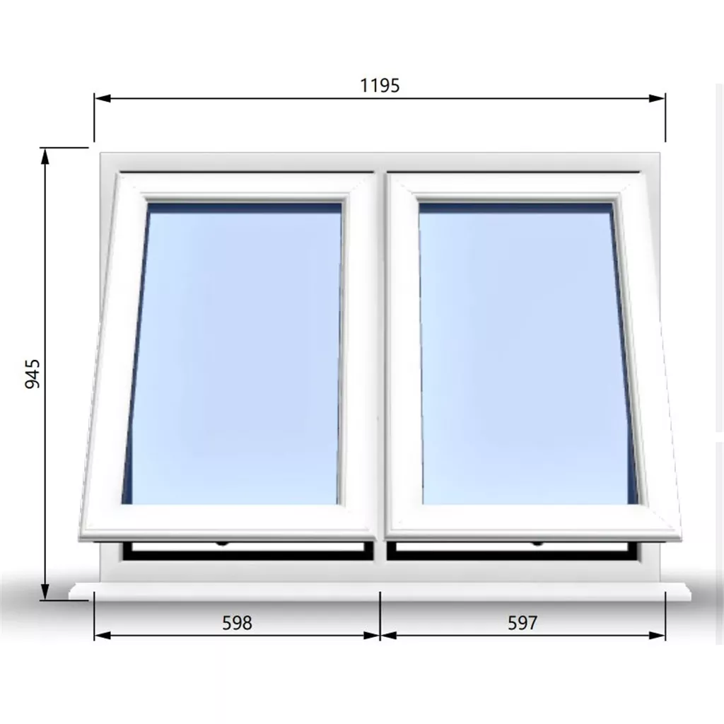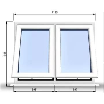 1195mm (W) x 945mm (H) Premium PVCu Stormproof Casement Window - 2 Vertical Bottom Opening Windows - 70mm Projecting Cill - Trickle Vent - Black Gasket and Chrome Furniture - Toughened Clear Panes - Fixing Kit - White Inside and Outside - "Part Q" Compliant.