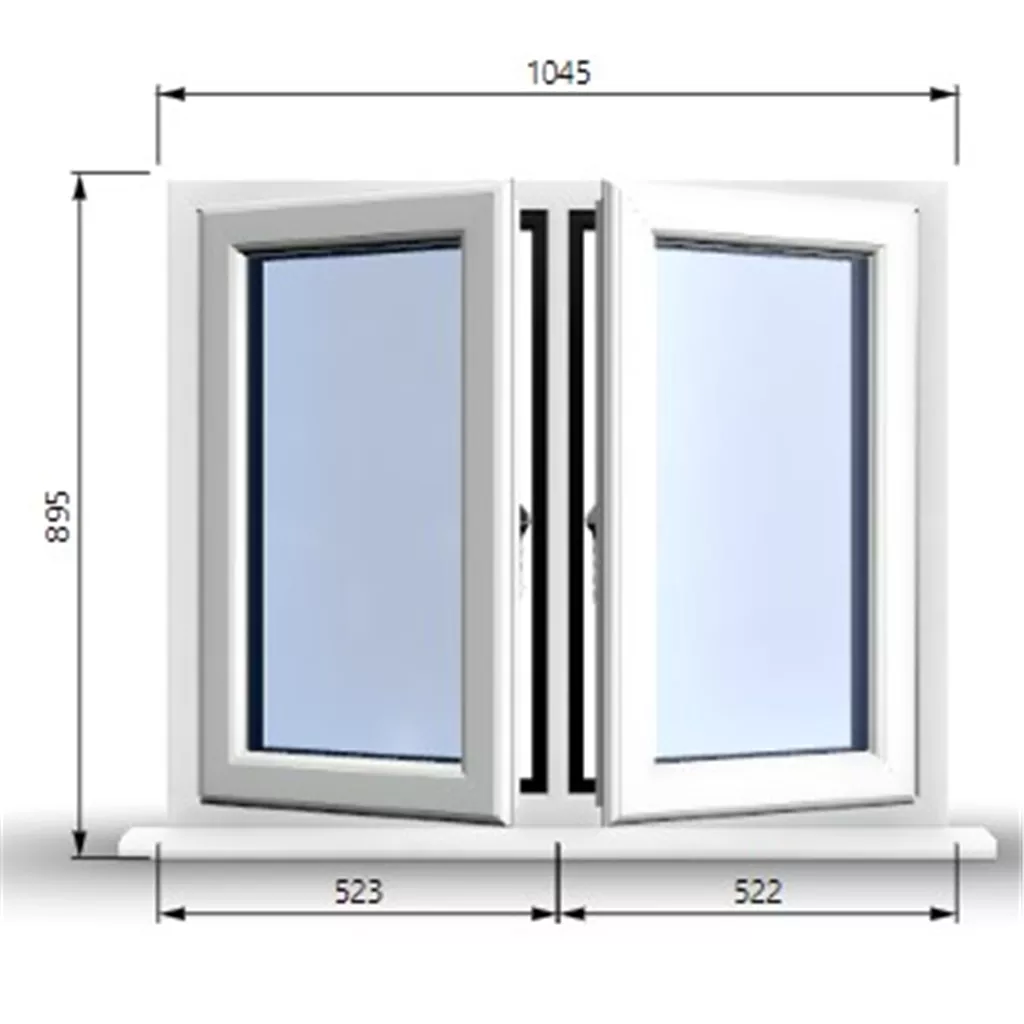 1045mm (W) x 895mm (H) Premium PVCu Stormproof Casement Window - 2 Central Opening Windows - 70mm Projecting Cill - Trickle Vent - Black Gasket and Chrome Furniture - Toughened Clear Panes - Fixing Kit - White Inside and Outside - "Part Q" Compliant.
