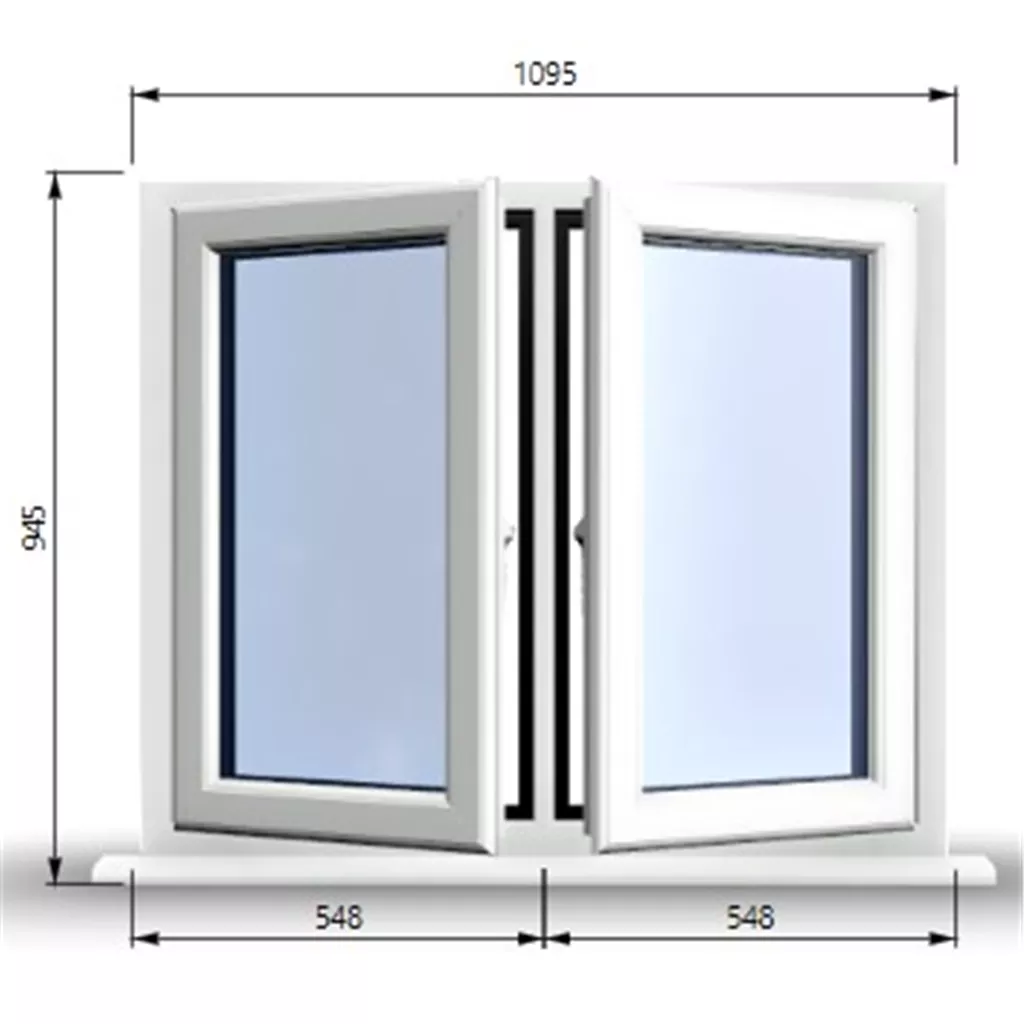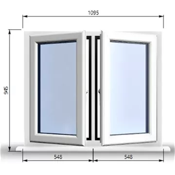 1095mm (W) x 945mm (H) Premium PVCu Stormproof Casement Window - 2 Central Opening Windows - 70mm Projecting Cill - Trickle Vent - Black Gasket and Chrome Furniture - Toughened Clear Panes - Fixing Kit - White Inside and Outside - "Part Q" Compliant.