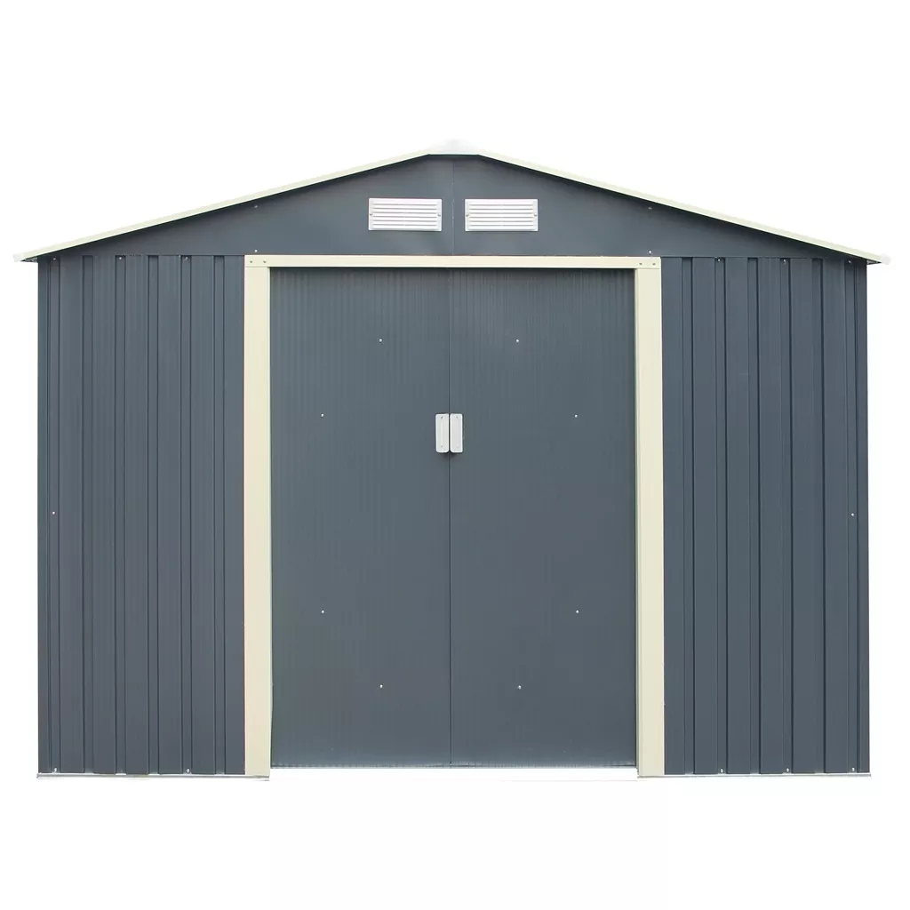 8 x 6 (2.61m x 1.81m) Double Door Metal Apex Shed - Dark Grey